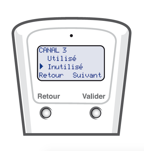 Répéter cette étape si vous souhaitez ouvrir un autre canal. Sinon, laisser la flèche sur Inutilisé, et appuyer sur le bouton Valider de chaque canal.